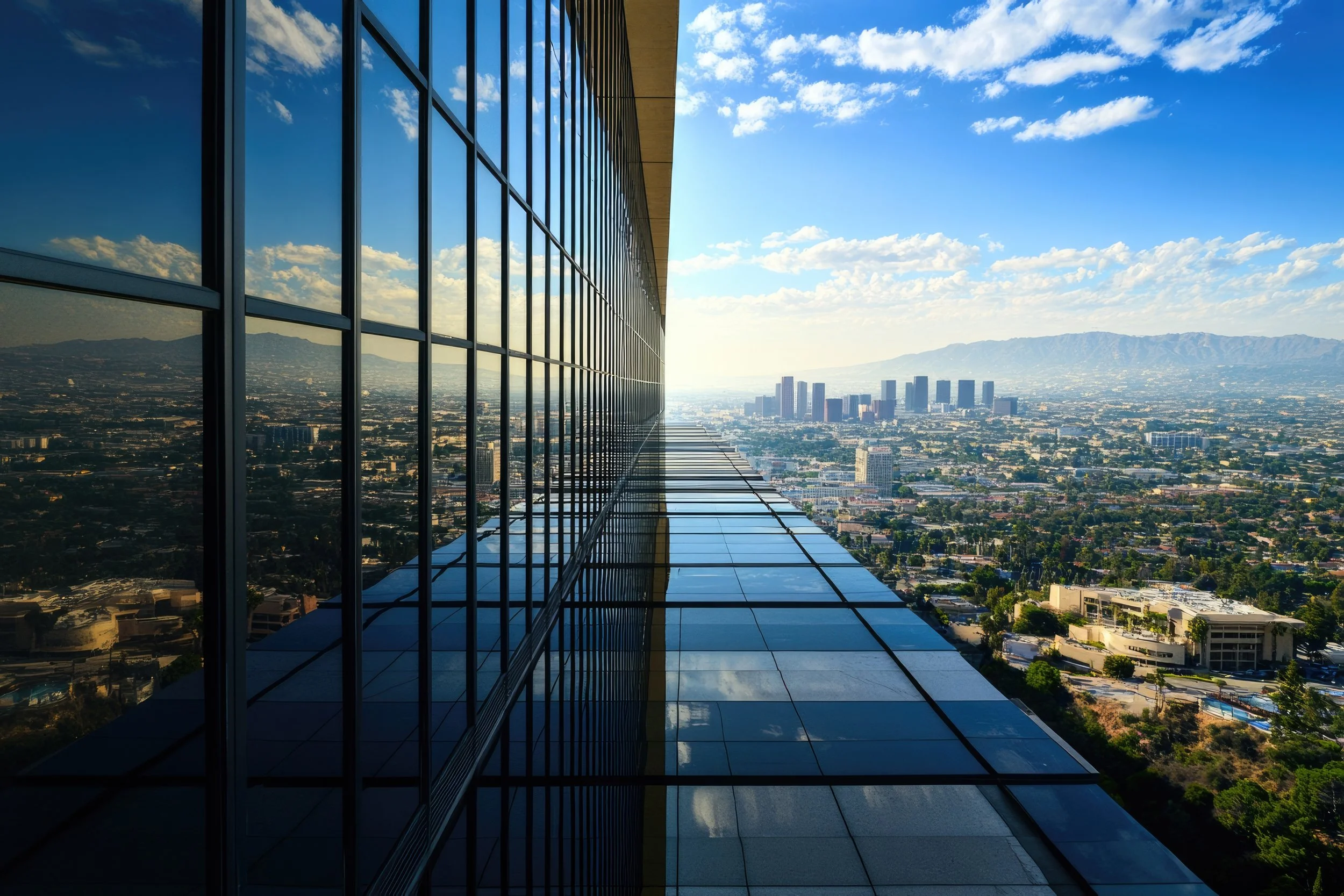 Aerial View of Century City: Los Angeles Skyline with Beverly Hills and Santa Monica Mountains in Afternoon Light